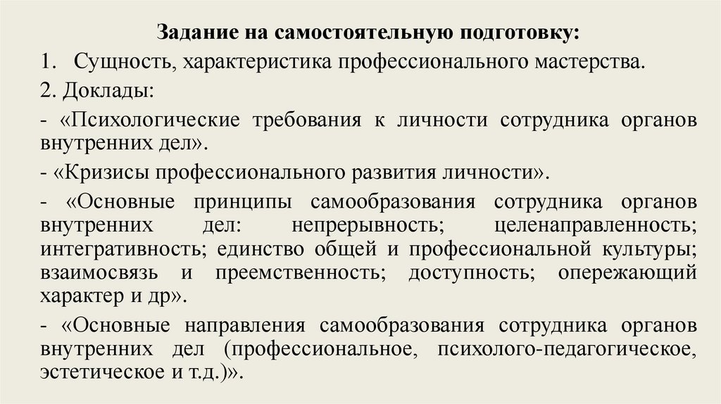 - «Основные принципы самообразования сотрудника органов