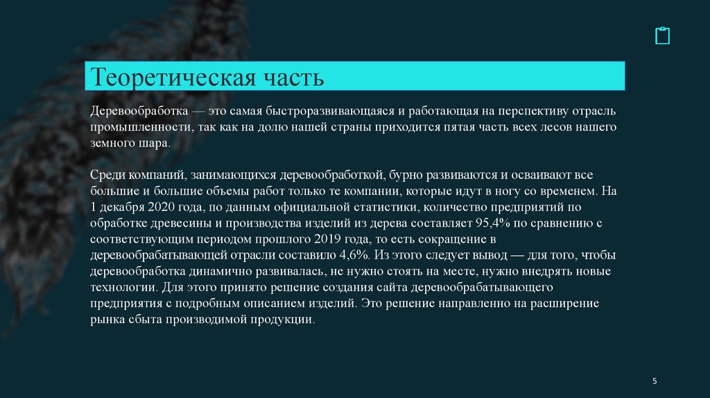 деревообрабатывающей отрасли составило 4,6%. Из этого следует вывод — для того, чтобы