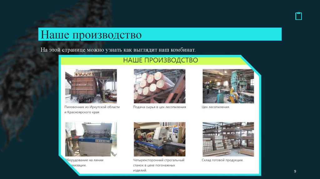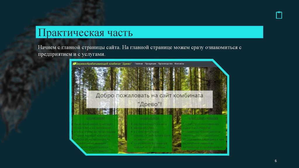 технологии. Для этого принято решение создания сайта деревообрабатывающего