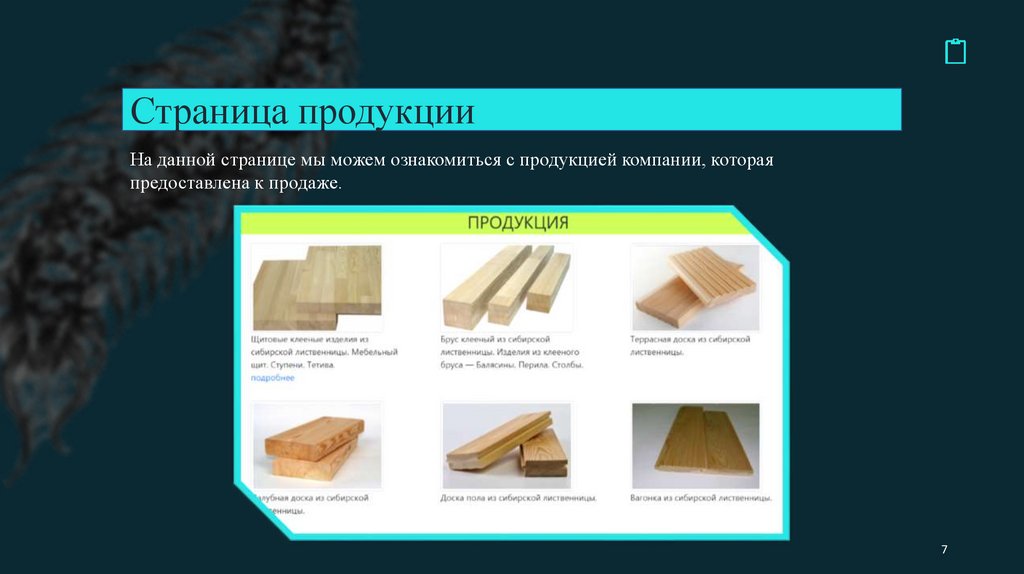 Страница продукцииНа данной странице мы можем ознакомиться с продукцией компании, которая