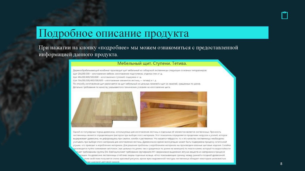 Подробное описание продуктаПри нажатии на кнопку «подробнее» мы можем ознакомиться с предоставленной