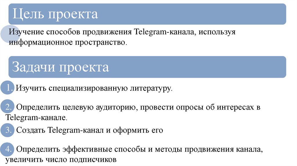 Цель проектаИзучение способов продвижения Telegram-канала, используя