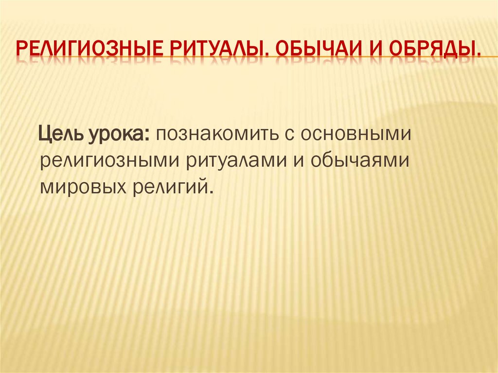 РЕЛИГИОЗНЫЕ РИТУАЛЫ. ОБЫЧАИ И ОБРЯДЫ.Цель урока: познакомить с основными