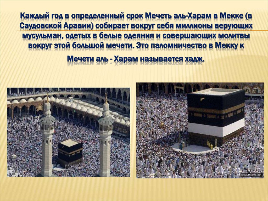 Каждый год в определенный срок Мечеть аль-Харам в Мекке (вСаудовской Аравии) собирает вокруг себя миллионы верующих