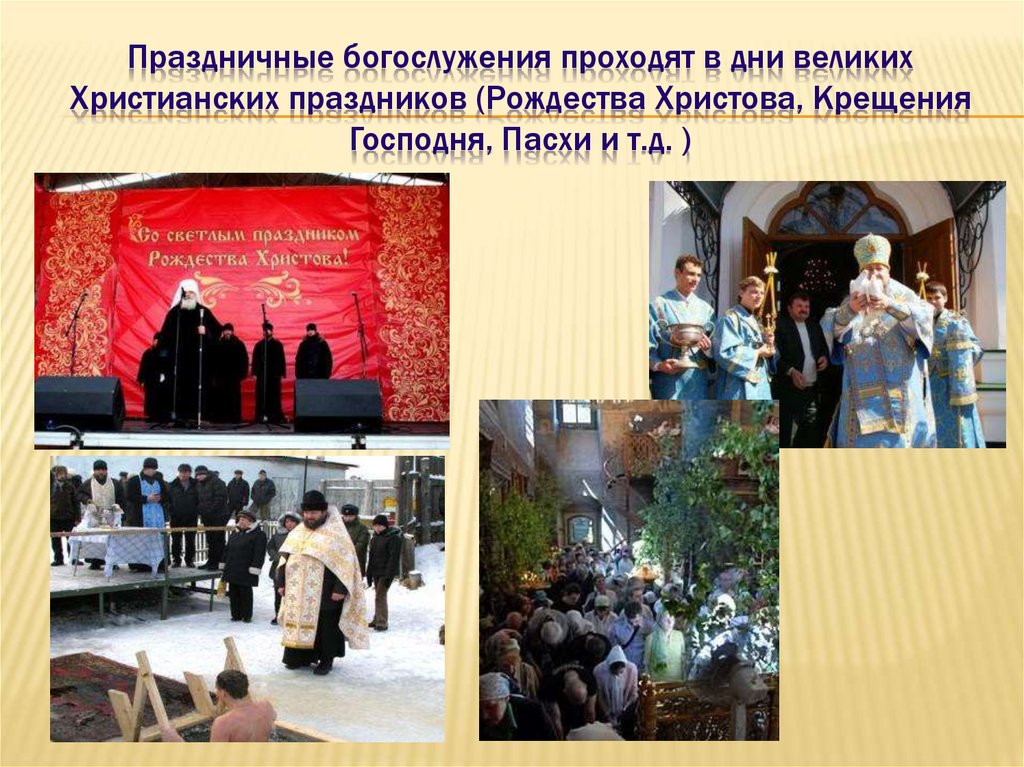 Праздничные богослужения проходят в дни великихХристианских праздников (Рождества Христова, Крещения
