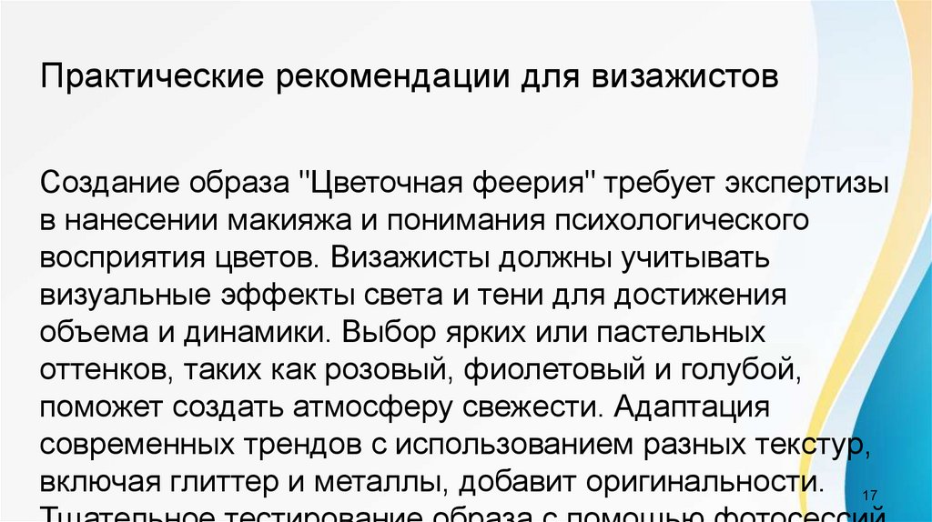 Практические рекомендации для визажистовСоздание образа "Цветочная феерия" требует экспертизы