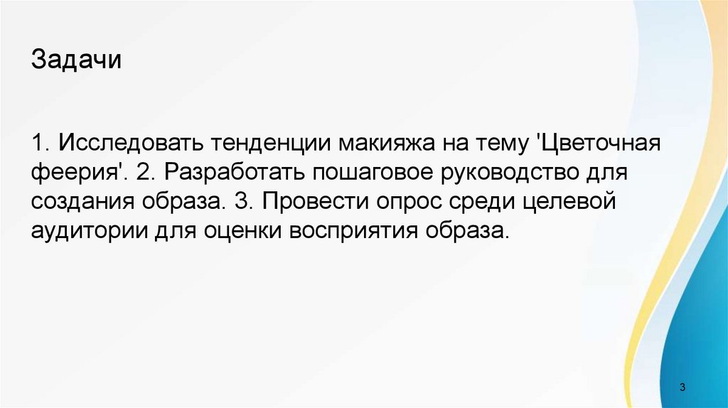 Задачи1. Исследовать тенденции макияжа на тему 'Цветочная