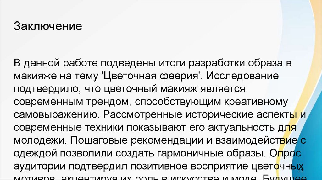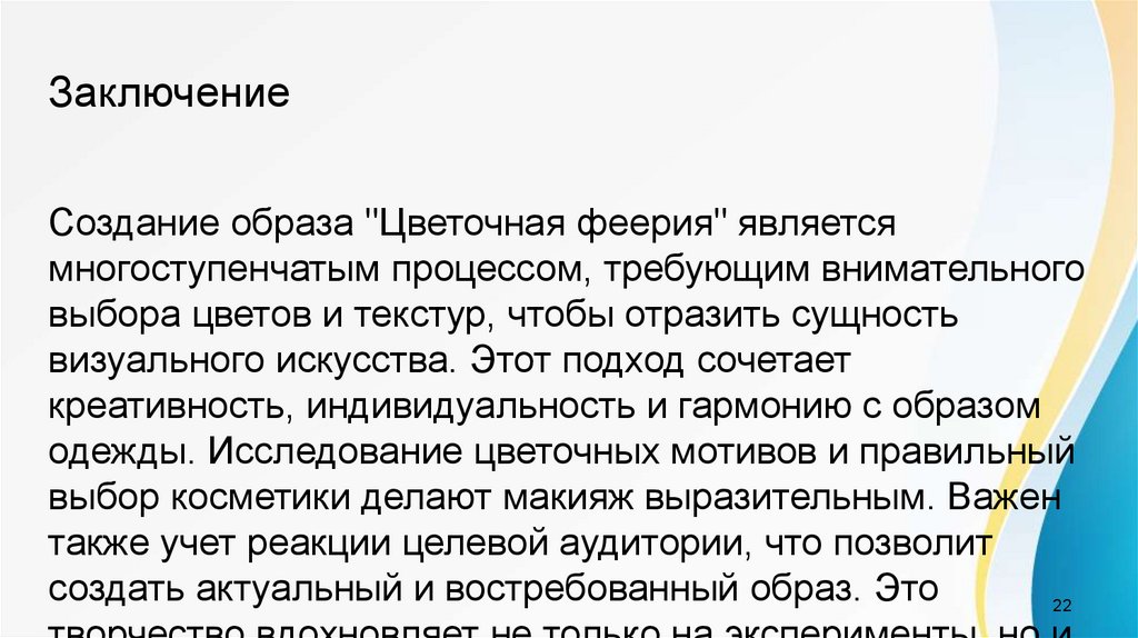 ЗаключениеСоздание образа "Цветочная феерия" является