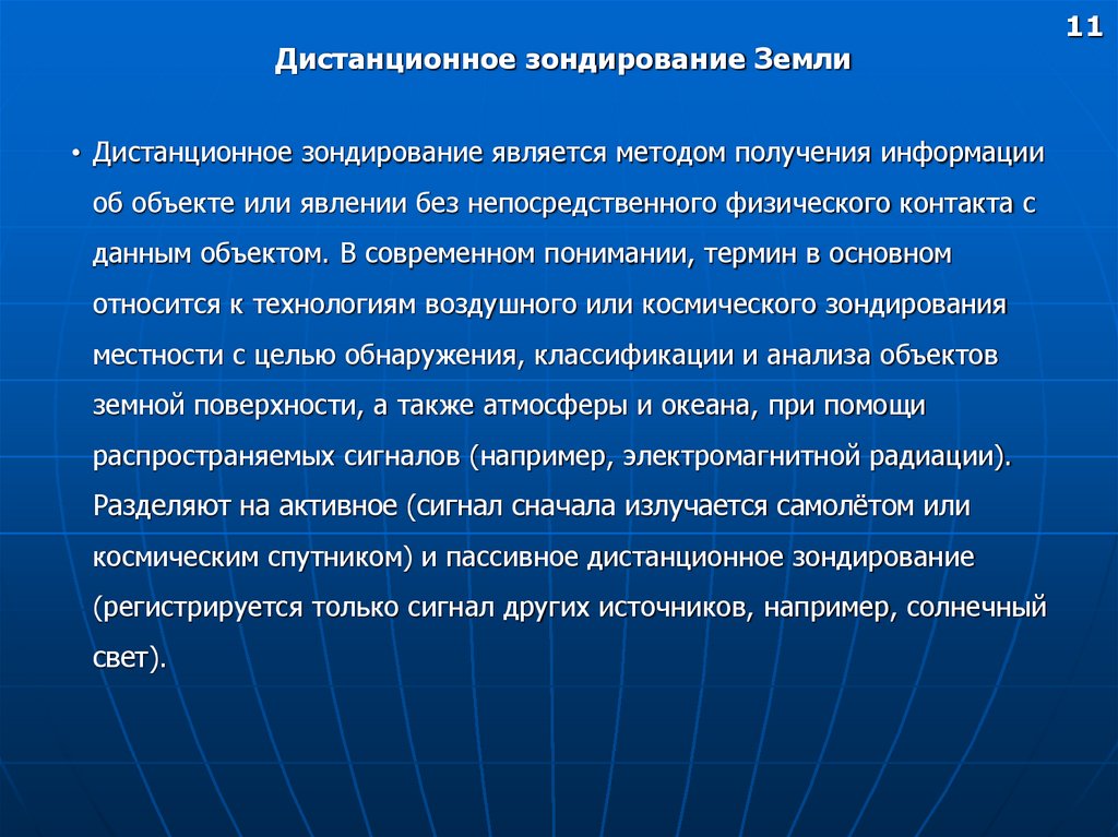 Дистанционное зондирование Земли• Дистанционное зондирование является методом получения информации