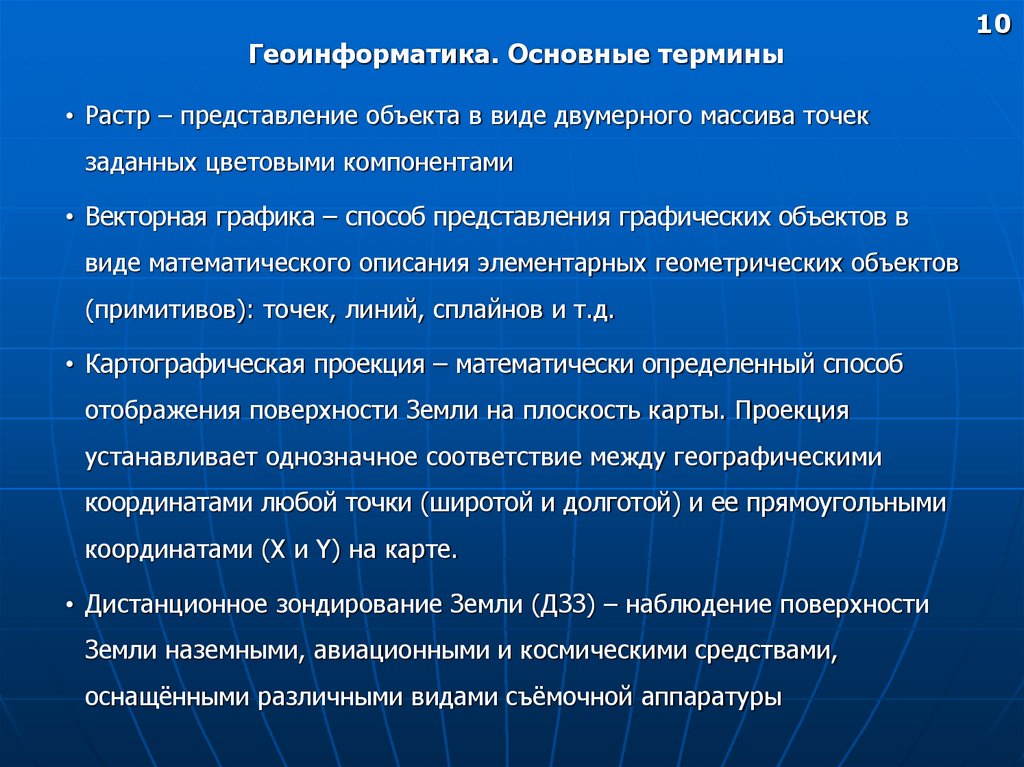 Геоинформатика. Основные термины• Растр – представление объекта в виде двумерного массива точек