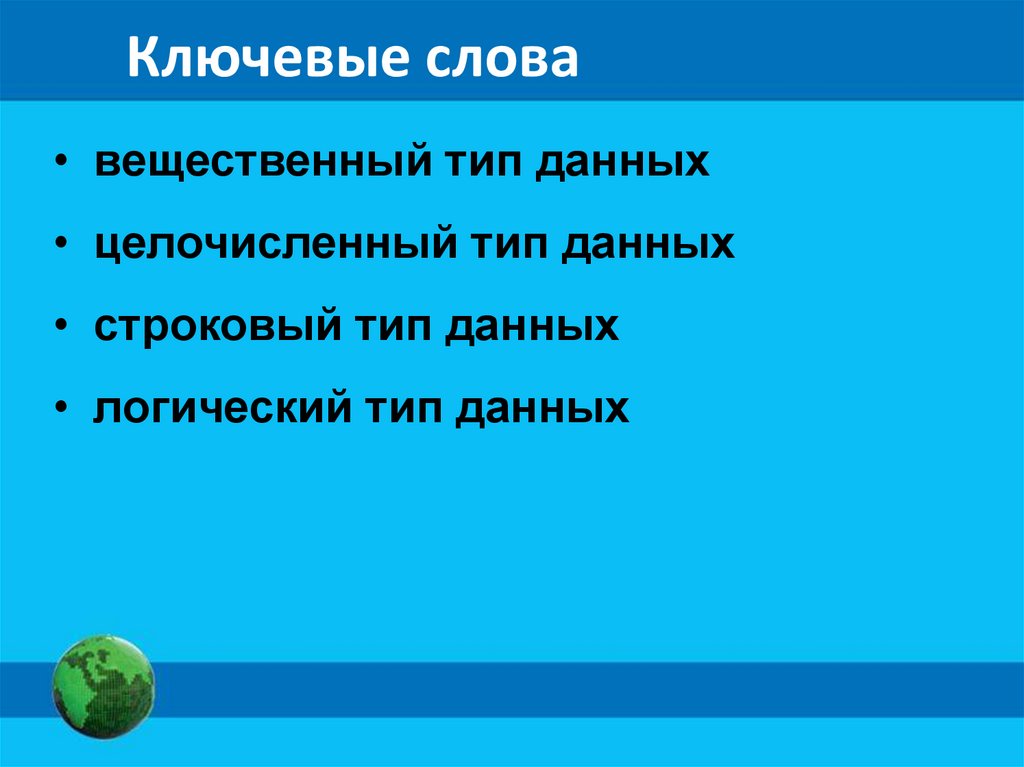 Ключевые слова• вещественный тип данных