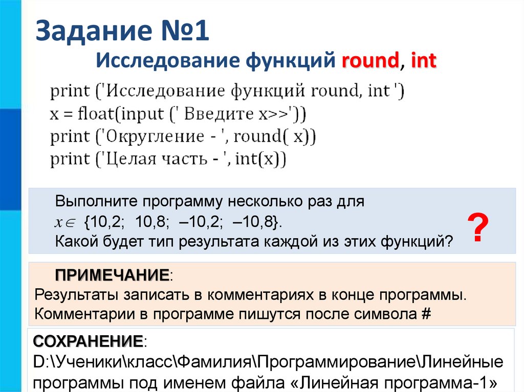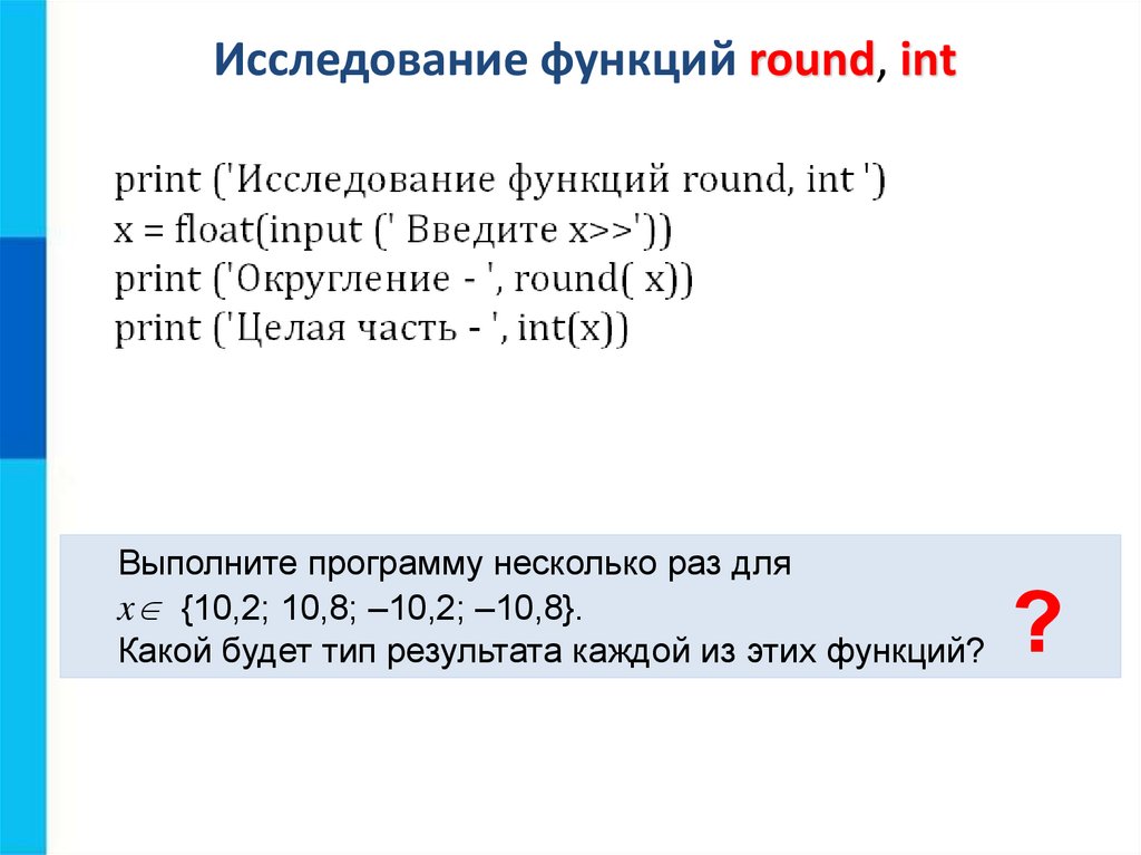 Исследование функций round, intВыполните программу несколько раз для