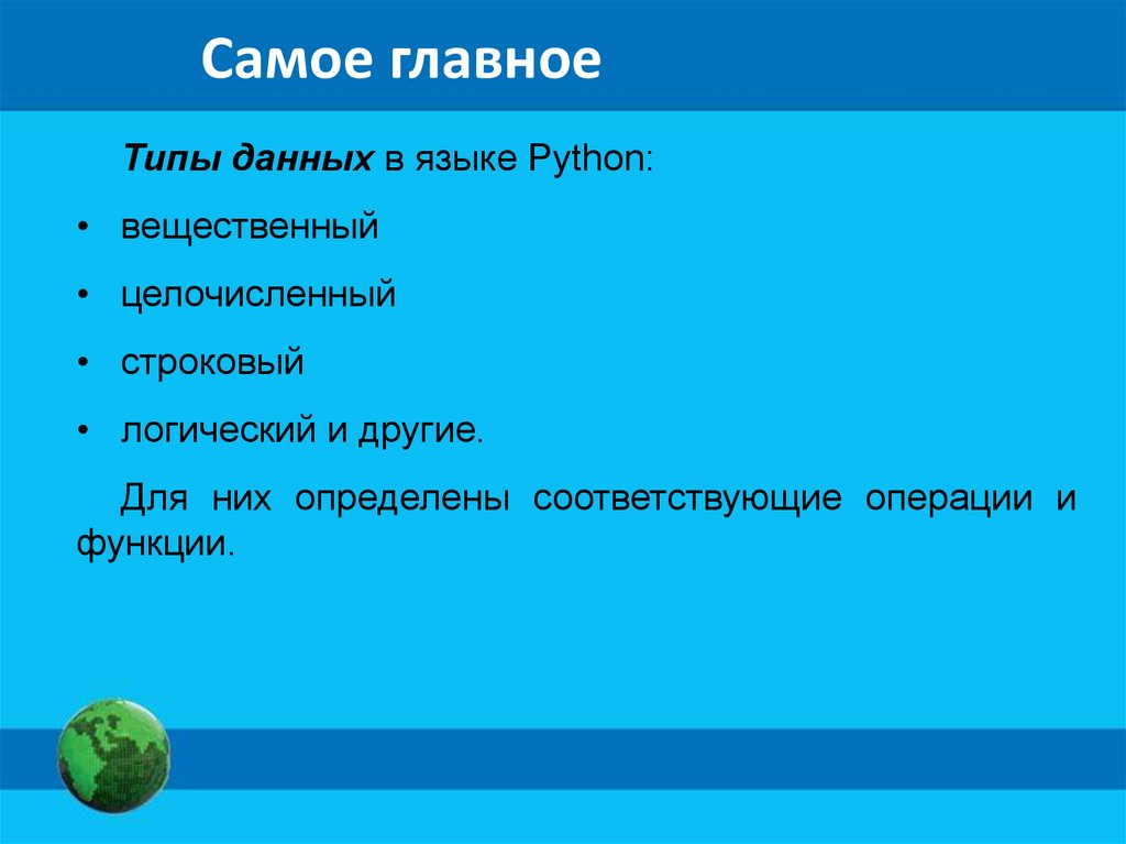 Самое главноеТипы данных в языке Python: