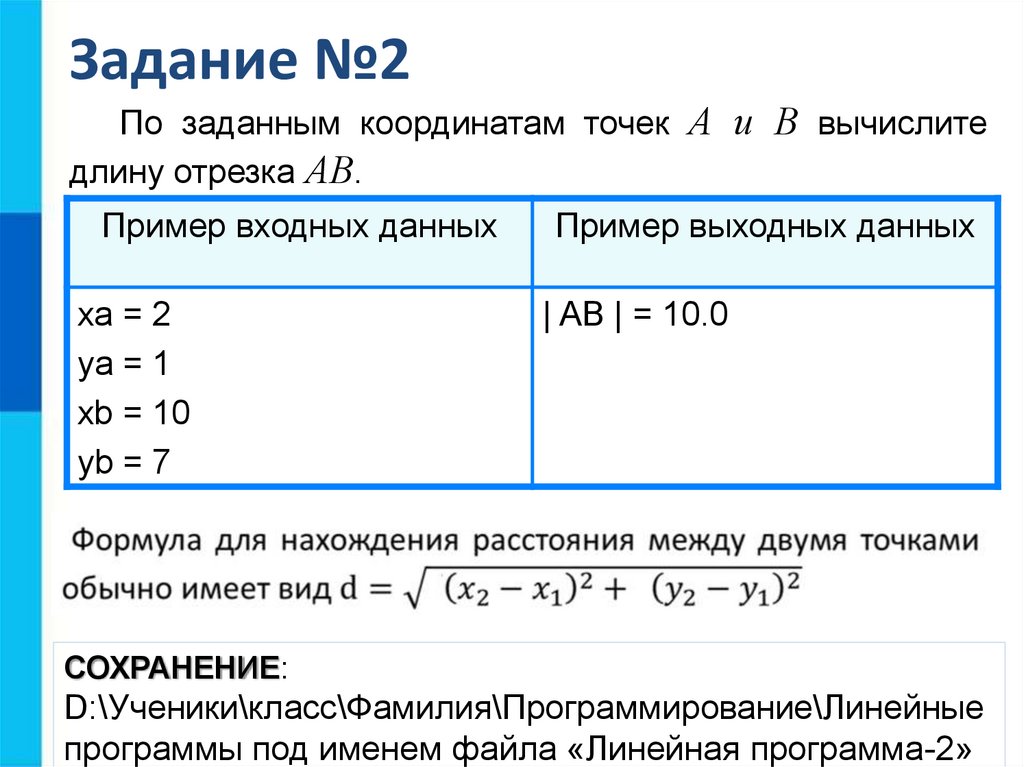 Задание №2По заданным координатам точек А и В вычислите