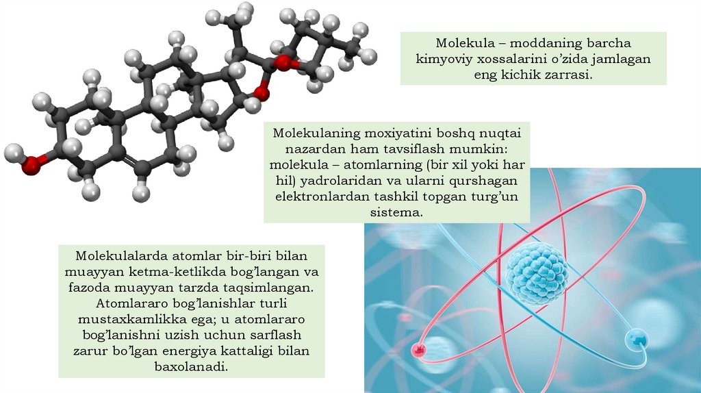 MODDA TUZILISHI.MOLEKULA. ATOM
