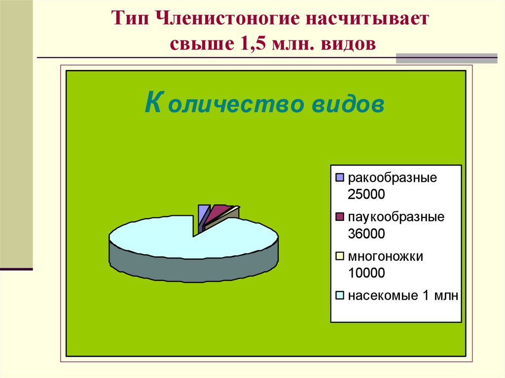 4. Тип Членистоногие насчитывает свыше 1,5 млн. видов