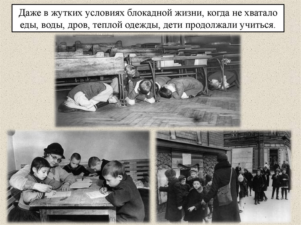 Даже в жутких условиях блокадной жизни, когда не хваталоеды, воды, дров, теплой одежды, дети продолжали учиться.