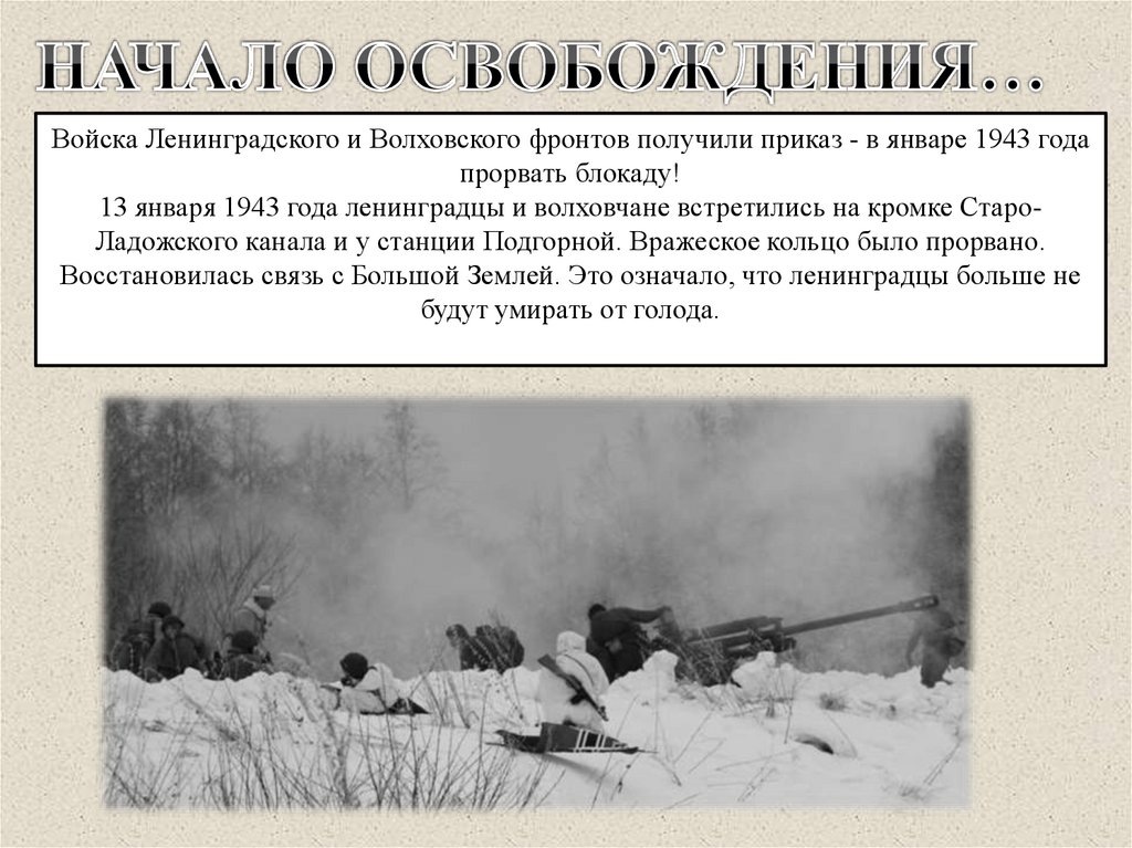 Войска Ленинградского и Волховского фронтов получили приказ - в январе 1943 годапрорвать блокаду!