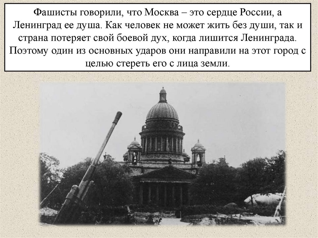 Фашисты говорили, что Москва – это сердце России, аЛенинград ее душа. Как человек не может жить без души, так и