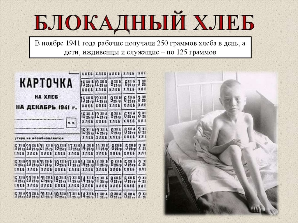 В ноябре 1941 года рабочие получали 250 граммов хлеба в день, адети, иждивенцы и служащие – по 125 граммов