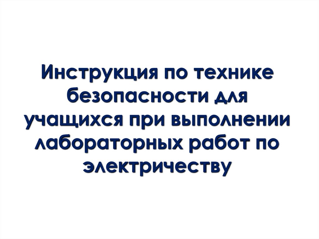Инструкция по технике безопасности для учащихся при выполнении лабораторных работ по электричеству
