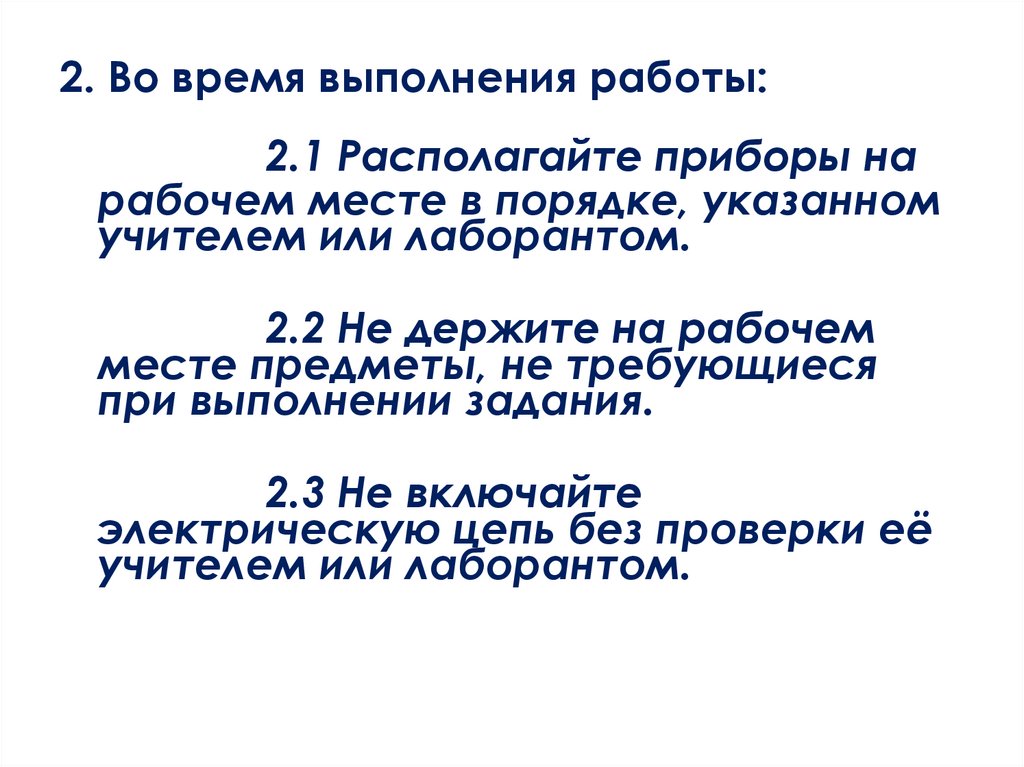 2. Во время выполнения работы:2.1 Располагайте приборы на