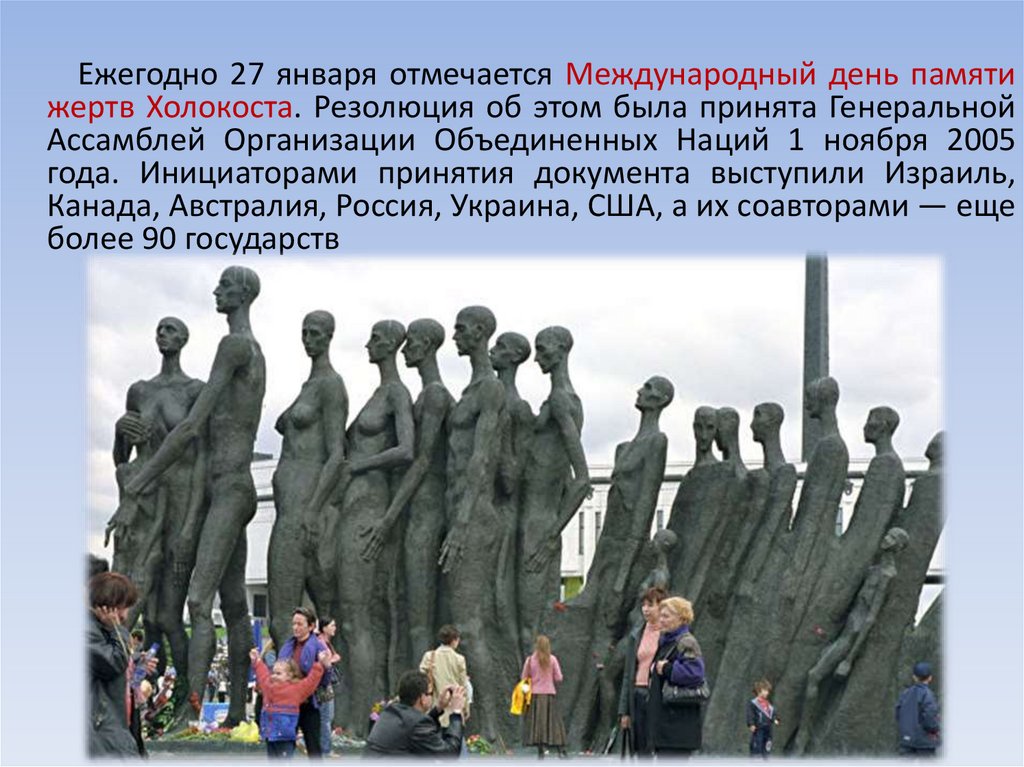 Ежегодно 27 января отмечается Международный день памятижертв Холокоста. Резолюция об этом была принята Генеральной