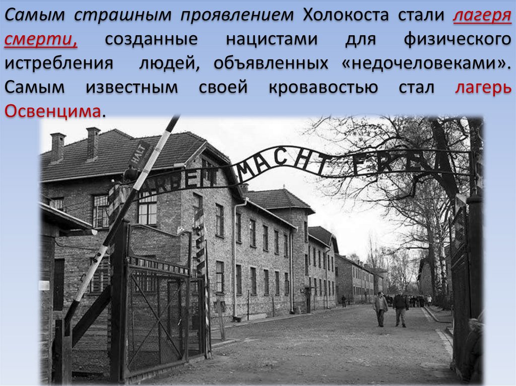 Самым страшным проявлением Холокоста стали лагерясмерти, созданные нацистами для физического