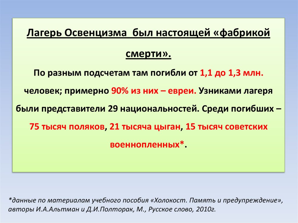 *данные по материалам учебного пособия «Холокост. Память и предупреждение»,