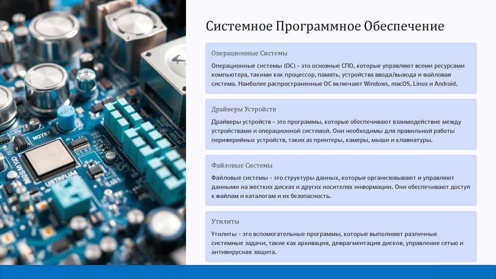 Операционные системы (ОС) - это основные СПО, которые управляют всеми ресурсами