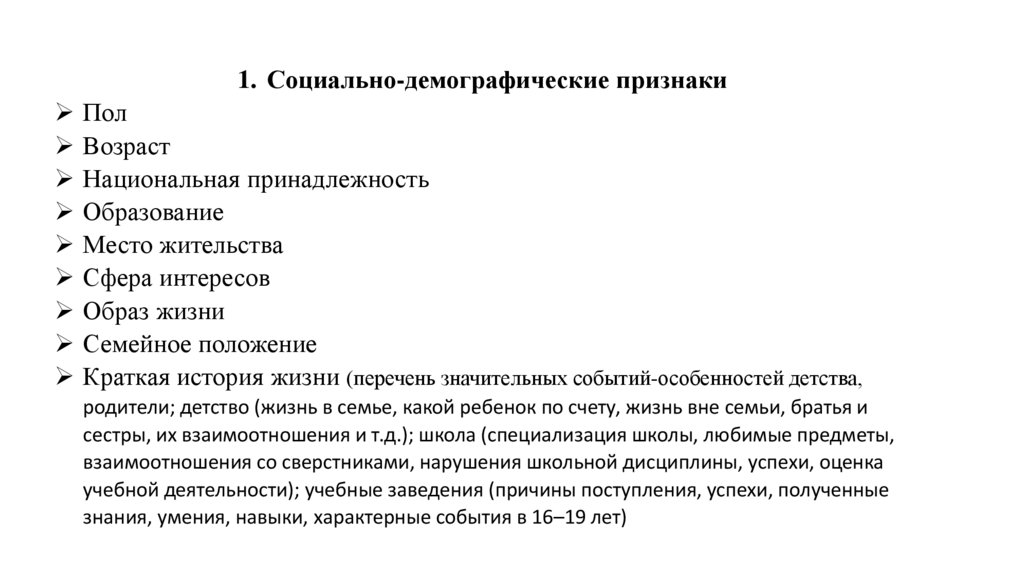 родители; детство (жизнь в семье, какой ребенок по счету, жизнь вне семьи, братья и