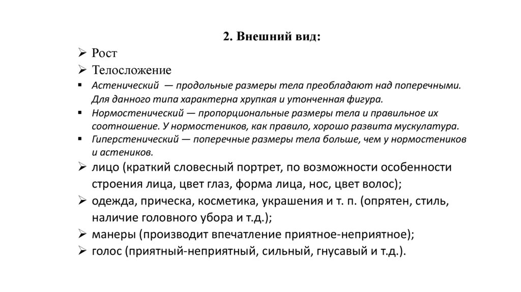строения лица, цвет глаз, форма лица, нос, цвет волос);