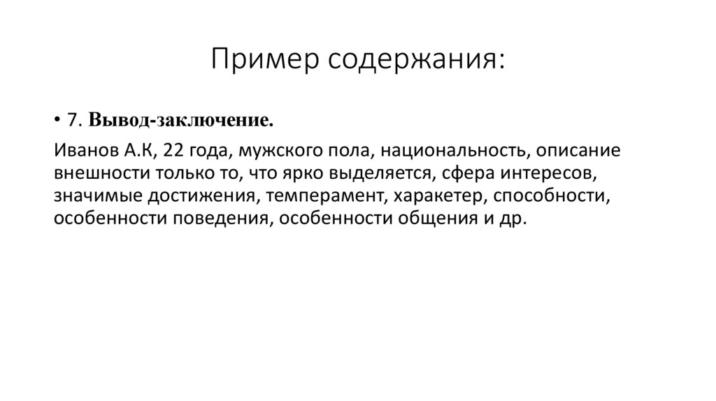 Иванов А.К, 22 года, мужского пола, национальность, описание