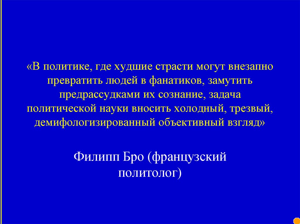 политической науки вносить холодный, трезвый,демифологизированный объективный взгляд»