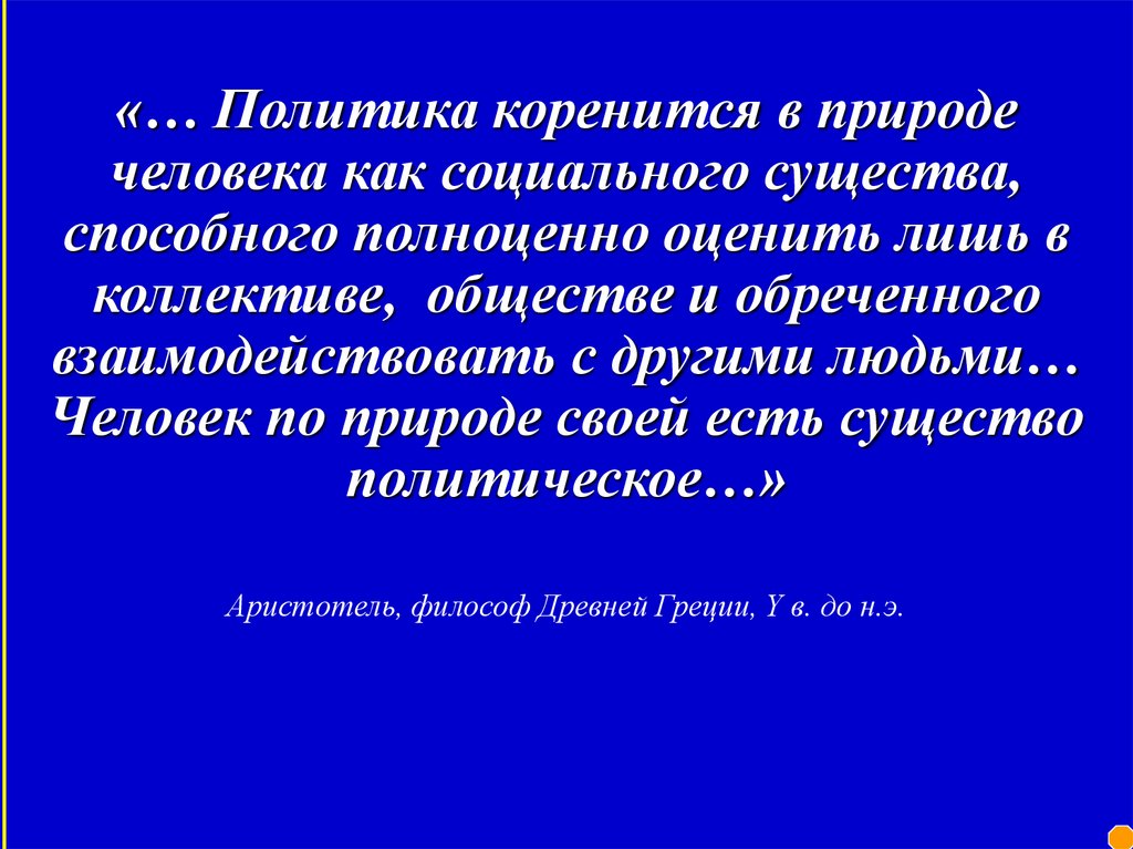 - ПОЛИТИКОС (politikos) – все, что связано с деятельностью городагосударства, с системой его управления («политес» - гражданин,