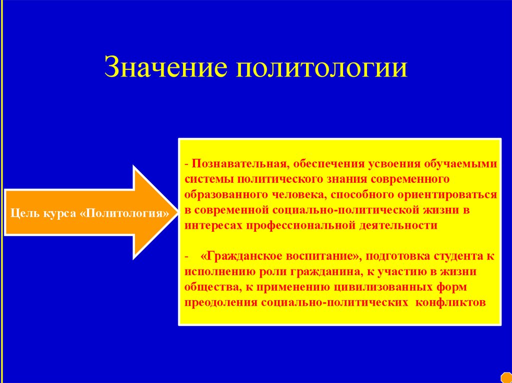 Цель курса «Политология»- Познавательная, обеспечения усвоения обучаемыми