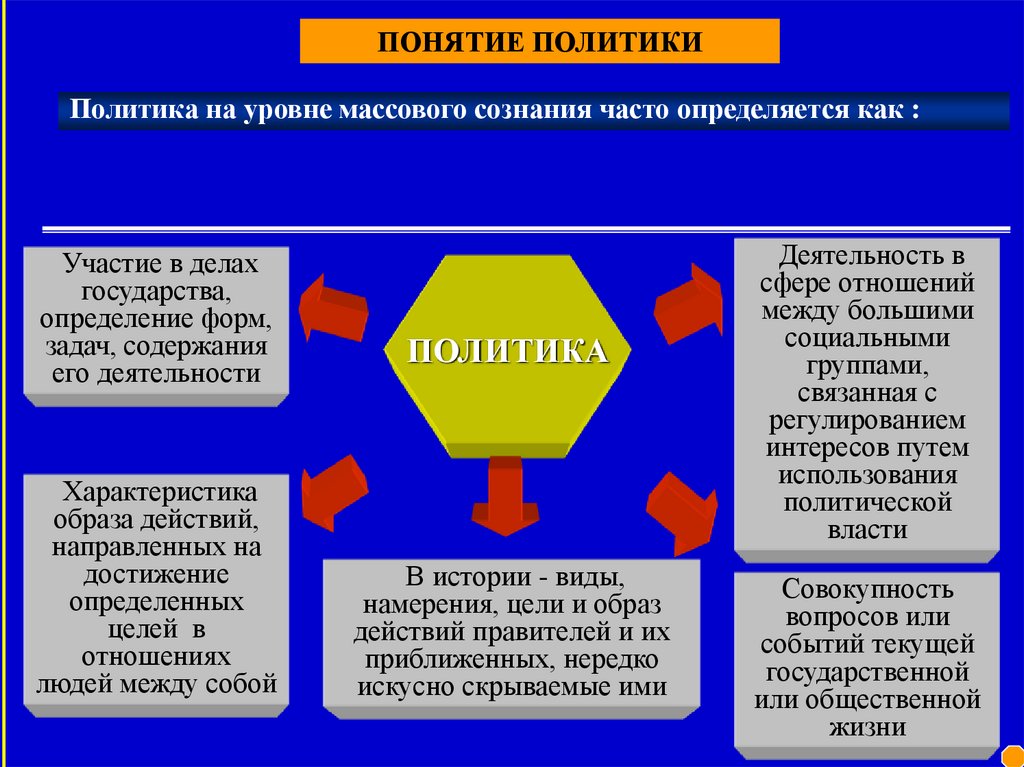 ПОНЯТИЕ ПОЛИТИКИПолитика на уровне массового сознания часто определяется как :