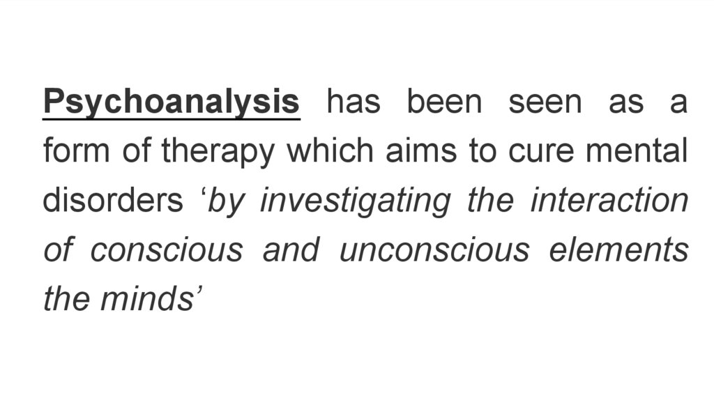 Psychoanalysis has been seen as aform of therapy which aims to cure mental