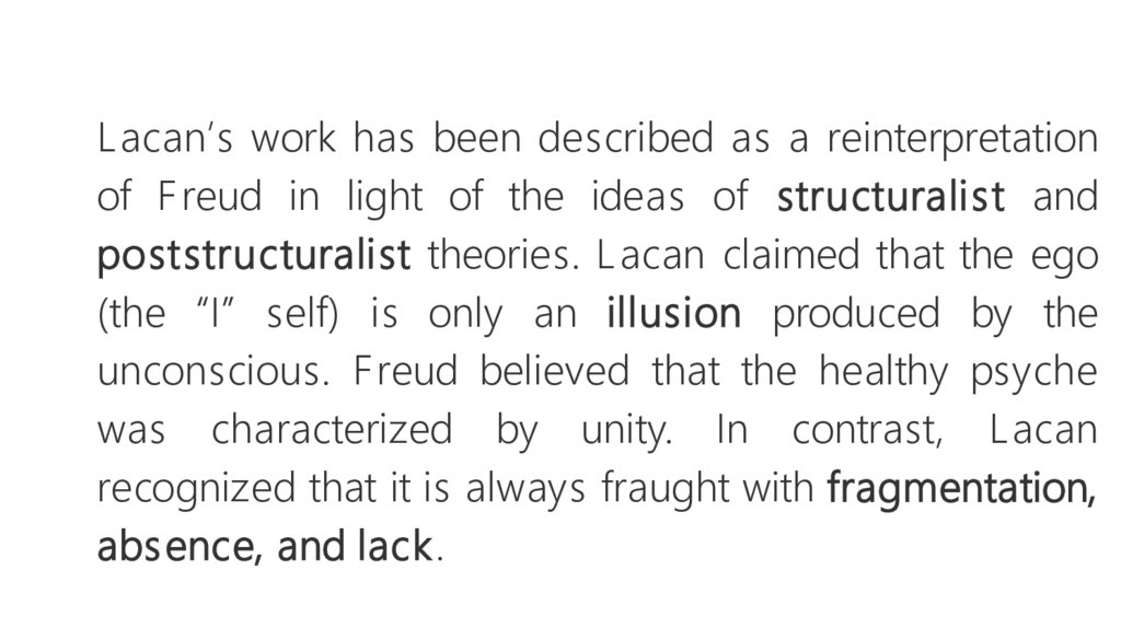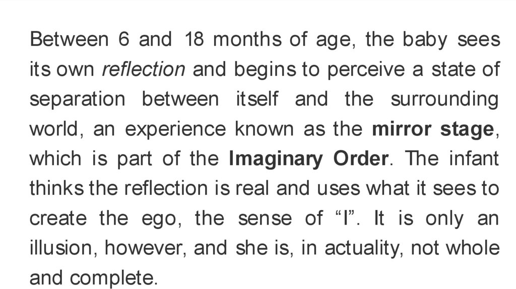 inaccessibility of a whole, integrated self. Identify any mirror-stage