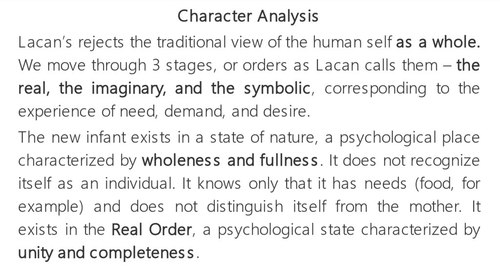 Identify the Real, Imaginary, and S ymbolic Orders in the narrative, and