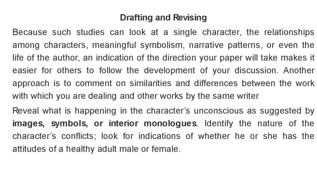 Drafting and RevisingBecause such studies can look at a single character, the relationships