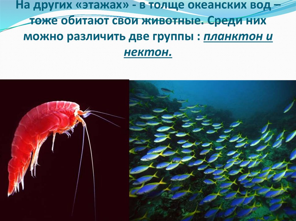 На других «этажах» - в толще океанских вод –тоже обитают свои животные. Среди них