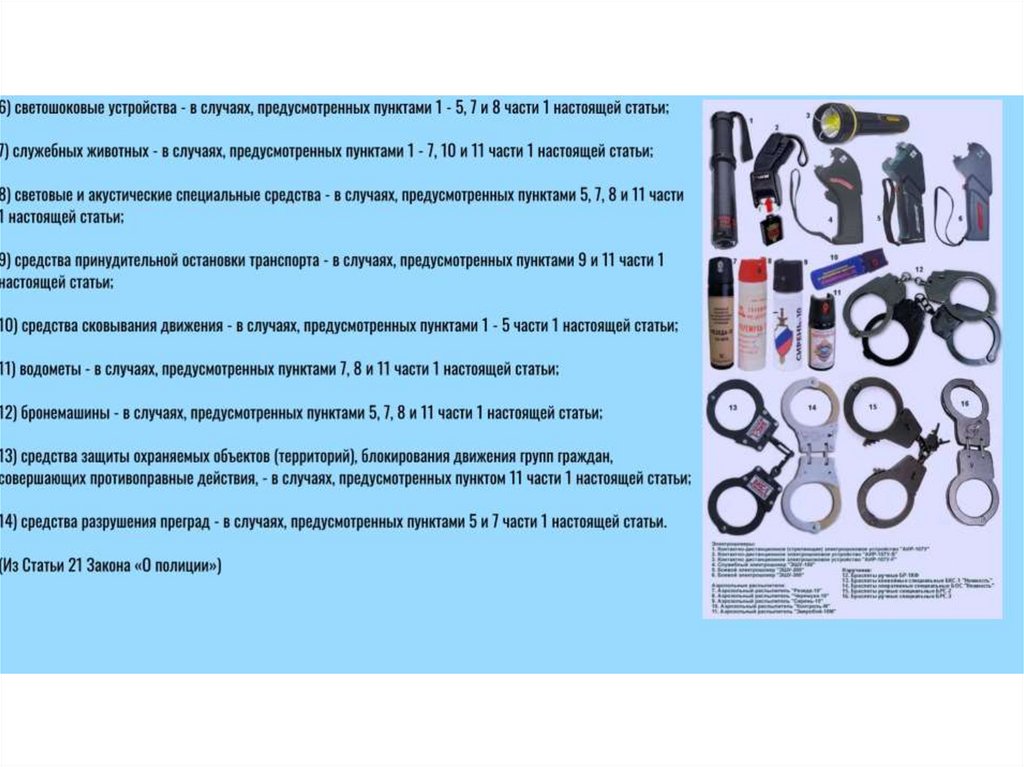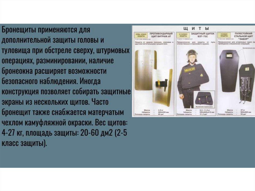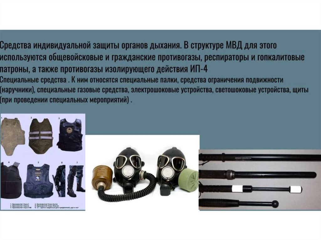 Тактико-технические характеристики вооружения, специальных средств, средств индивидуальной защиты органов дыхания и кожи,