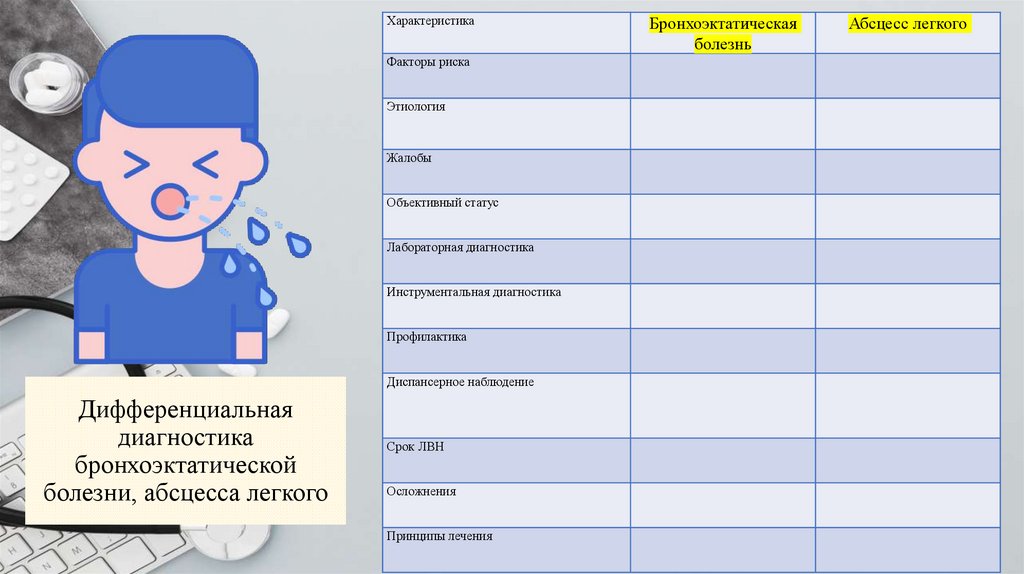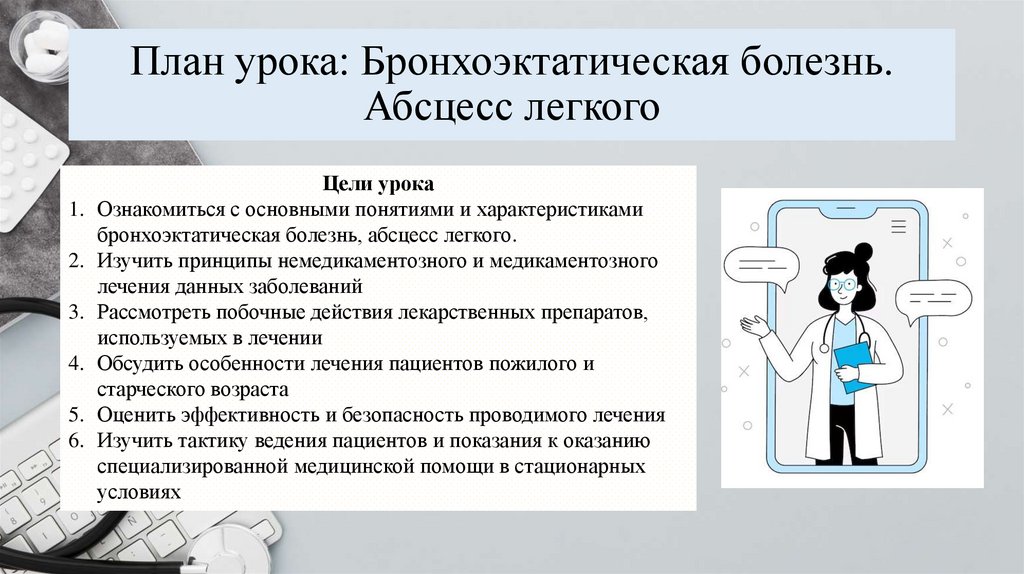 План урока: Бронхоэктатическая болезнь.Абсцесс легкого