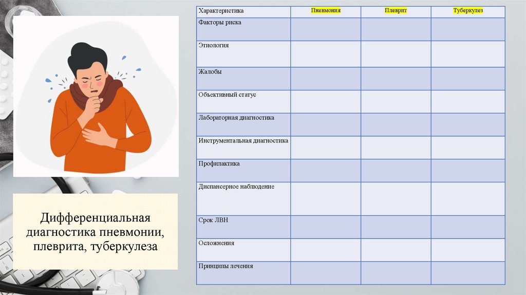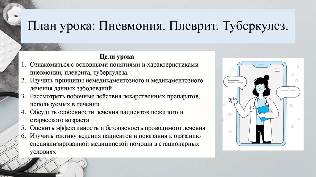 План урока: Пневмония. Плеврит. Туберкулез.Цели урока