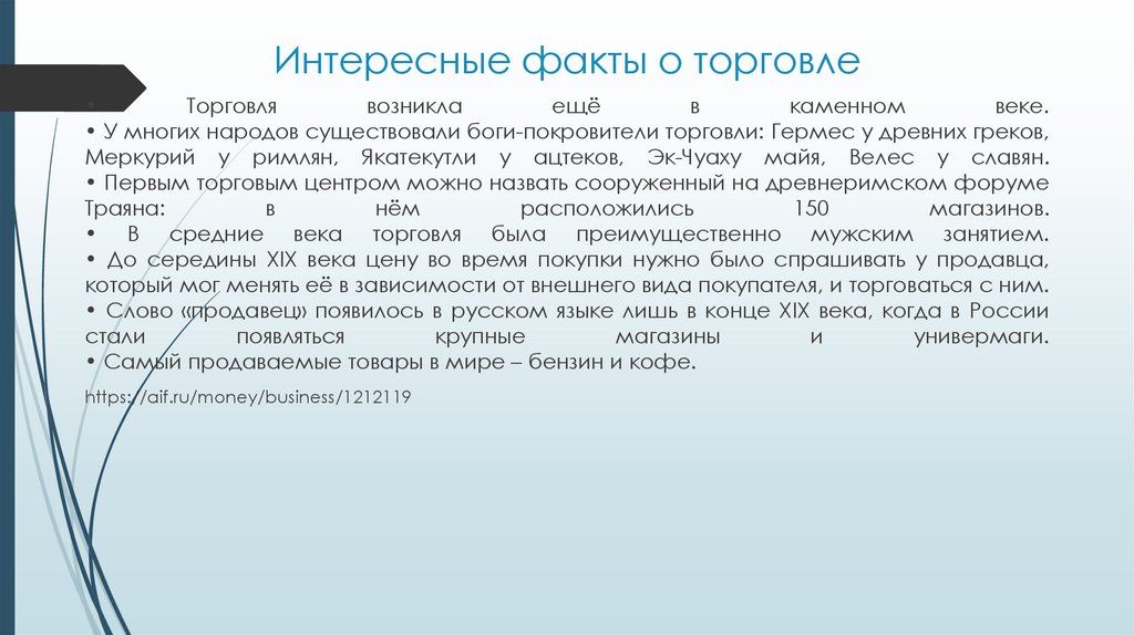 • У многих народов существовали боги-покровители торговли: Гермес у древних греков,
