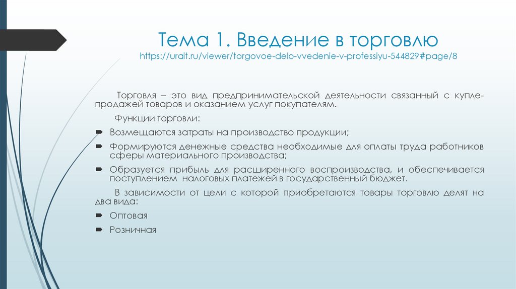 Тема 1. Введение в торговлюhttps://urait.ru/viewer/torgovoe-delo-vvedenie-v-professiyu-544829#page/8