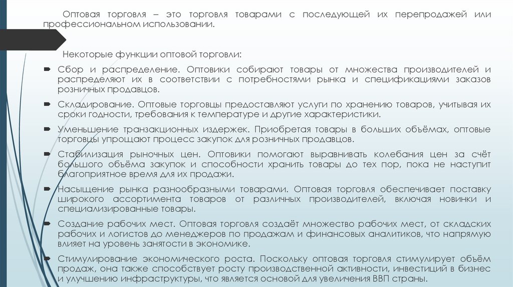 Стимулирование экономического роста. Поскольку оптовая торговля стимулирует объём