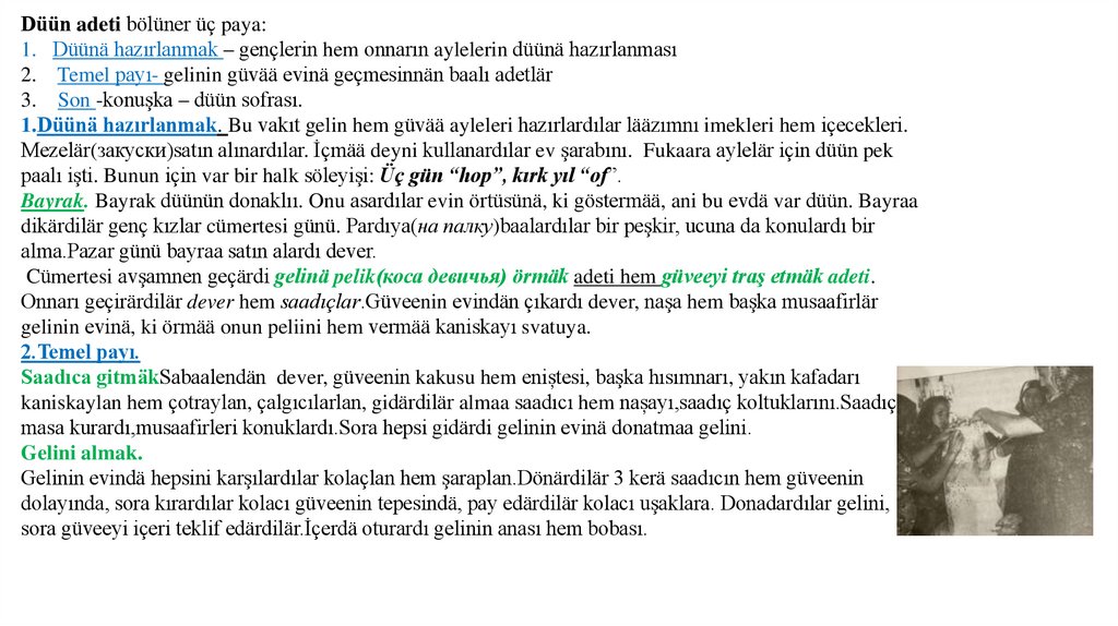 2. Temel payı- gelinin güvää evinä geçmesinnän baalı adetlär