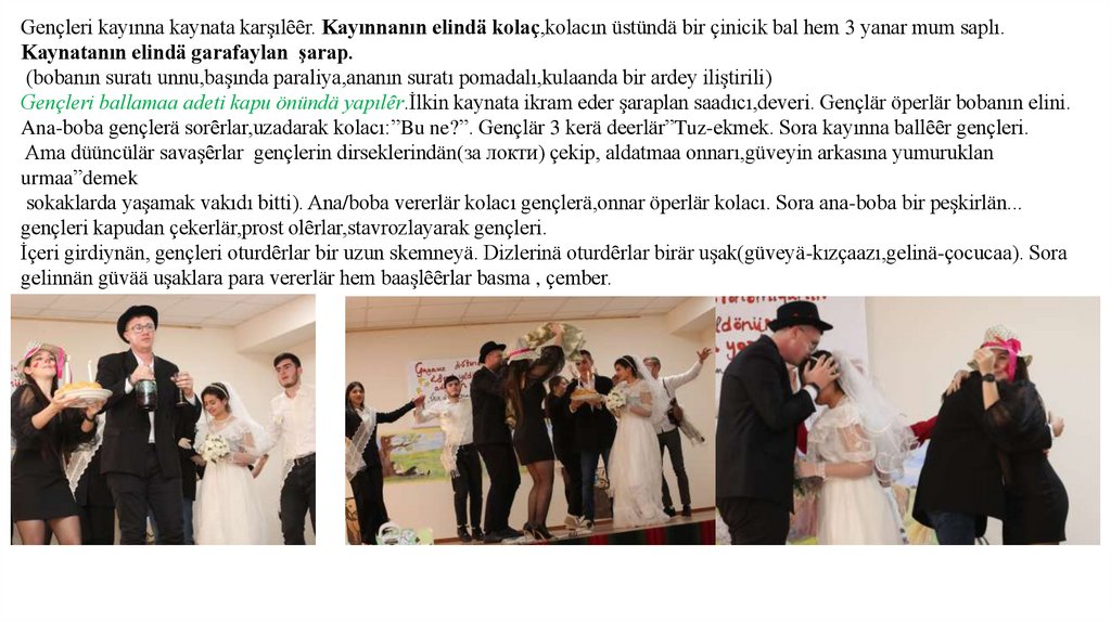 sokaklarda yaşamak vakıdı bitti). Ana/boba vererlär kolacı gençlerä,onnar öperlär kolacı. Sora ana-boba bir peşkirlän...